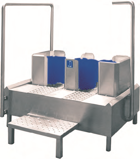 The side handrail and an additional handle, in which the stainless steel button that activates the brush rotation is integrated, ensure a secure grip when passing through the machine.